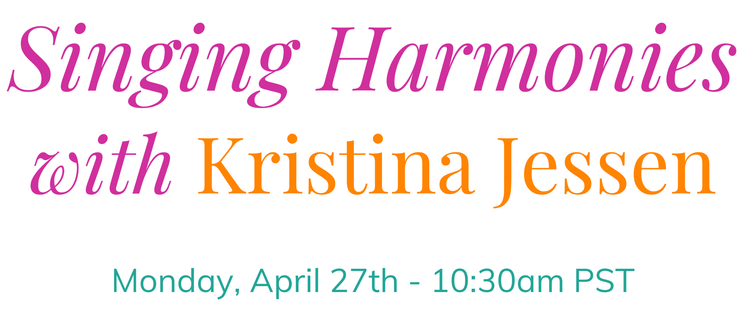 Join Kristina Jessen for a powerful and playful class in which she will share the magic of singing harmonies, empowering you to sing with anyone, anywhere, anytime.